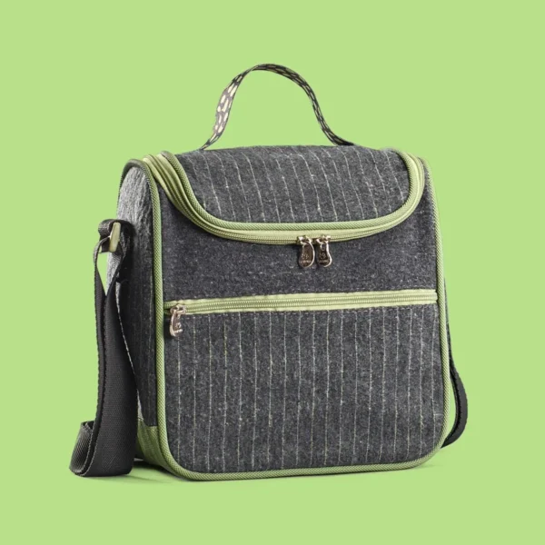 O tecido exterior em poliéster Oxford é resistente à água e de fácil limpeza. O forro interno em espuma EVA cria uma barreira térmica que mantém o frio e o calor até 6 horas. Fechos duplos reforçados evitam fugas de temperatura e garantem segurança no transporte.