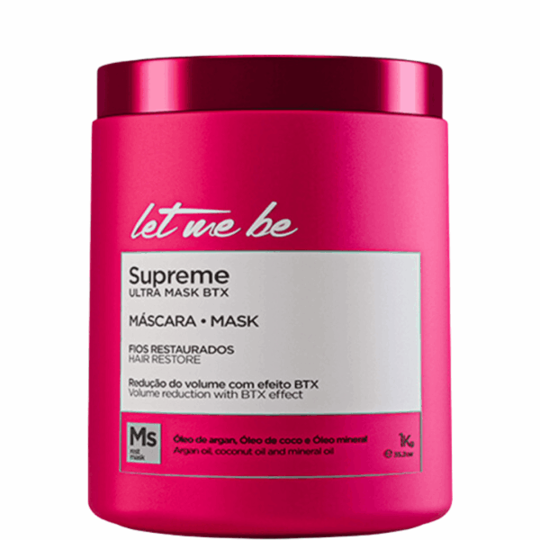 O Let Me Be Kit Shampoo Supreme Mask Keratin + Supreme Ultra Mask BTX une duas etapas essenciais para um tratamento completo: primeiro, o shampoo realiza limpeza profunda, removendo resíduos de styling e poluição; em seguida, a máscara BTX reconstrói a fibra, reduz volume e sela as cutículas, garantindo cabelos saudáveis e disciplinados.