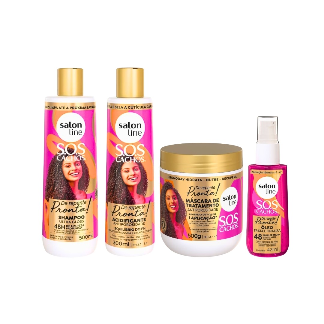 O kit shampoo acidificante máscara óleo De Repente Pronta reestrutura, equaliza o pH e cria um escudo antioxidante que prolonga o efeito liso ou a cor.