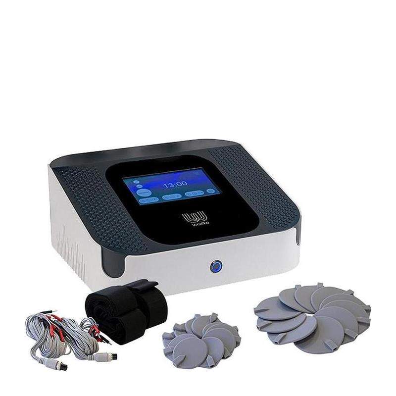 Weelko HIGHTECH EMS — Eletroestimulação Digital concebido para tratamentos estéticos e de tonificação muscular. O sistema EMS gera microcorrente pulsada controlada, permitindo ajustar frequência, tempo e intensidade por saída diretamente no ecrã tátil, com reprodução consistente de protocolos.