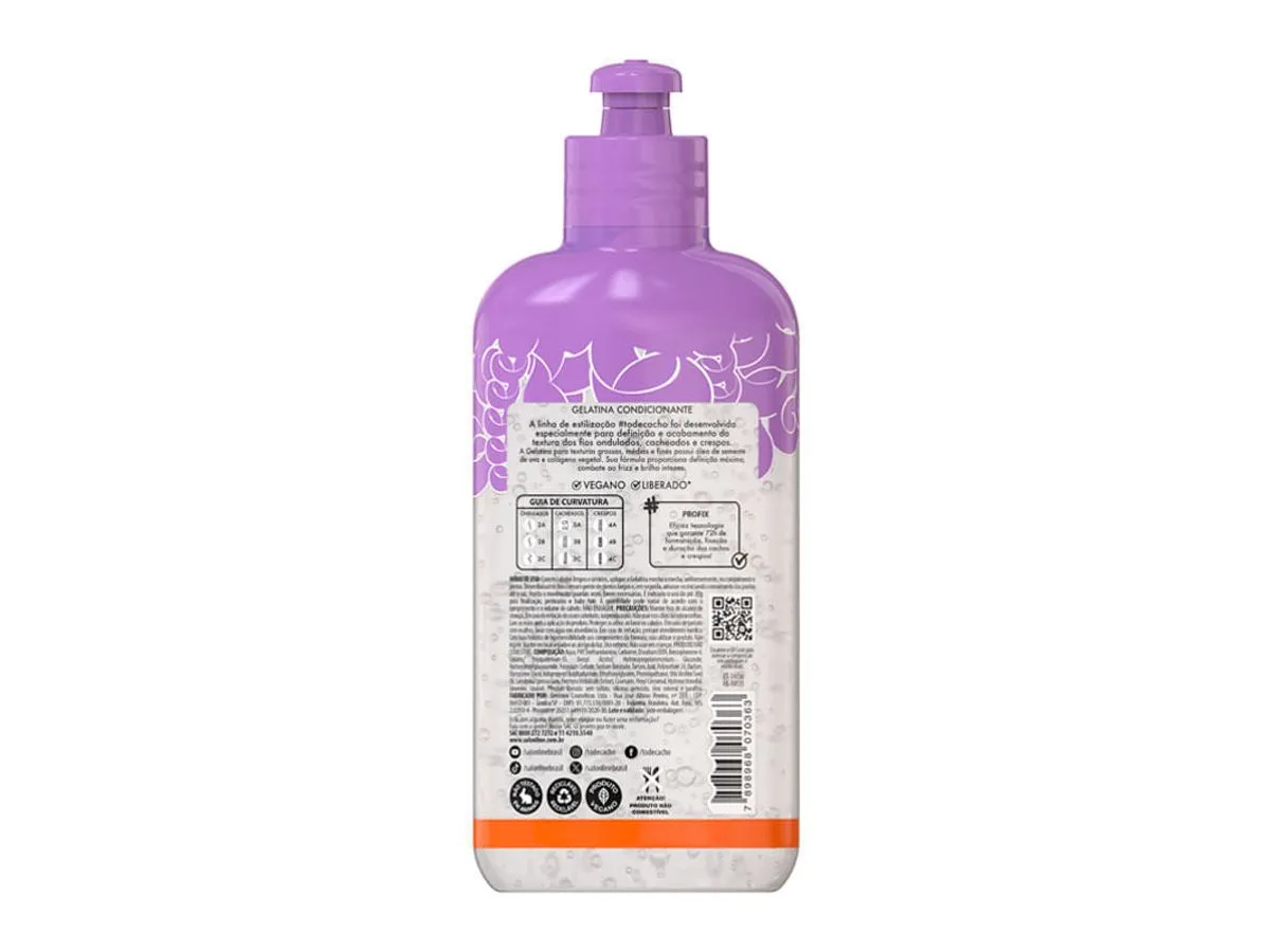 La Gelatina #todecacho Hydra Definition posee en su fórmula aceite de semilla de uva y colágeno vegetal para el cabello, garantizando retención de hidratación, fuerza y salud. Posee tecnología exclusiva PROFIX que garantiza hidratación, fuerza y salud para los cabellos, además de 72 horas de formato, fijación y durabilidad para rizos y frizz.