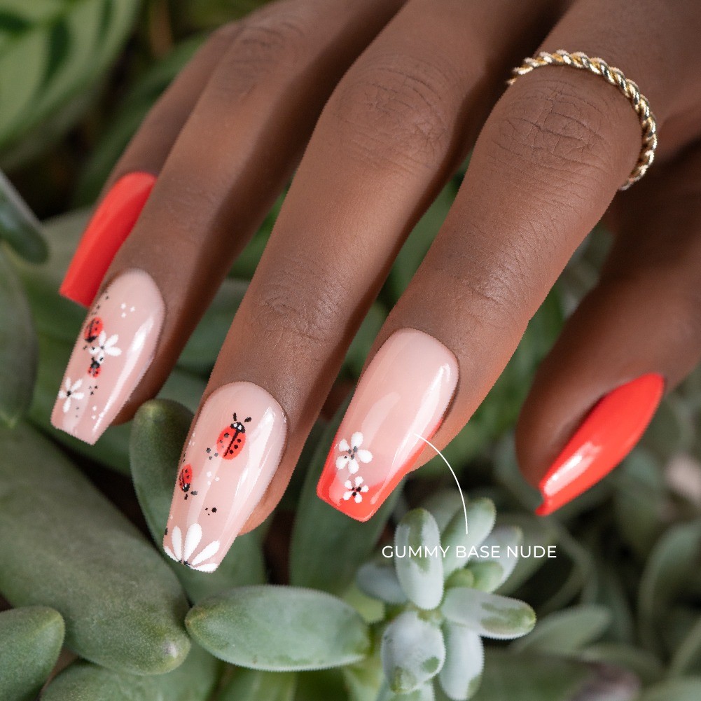 - Depois da preparação (assepsia, empurrar cutículas, fosquear e desengordurar), aplique uma camada fina da Gummy Base Nude.