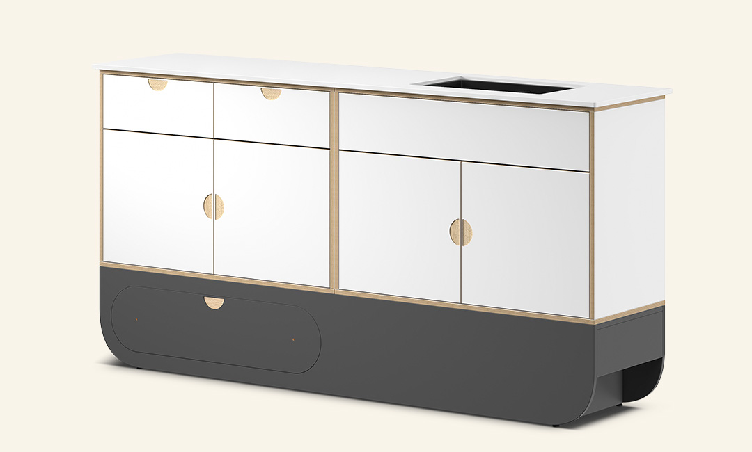 - Tampo em quartzo técnico: superfície fácil de higienizar e sem poros.
