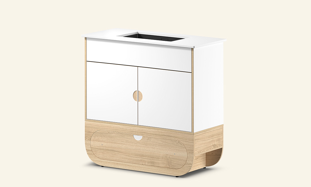 - Armário push to open: protege consumíveis de humidade e poeiras.