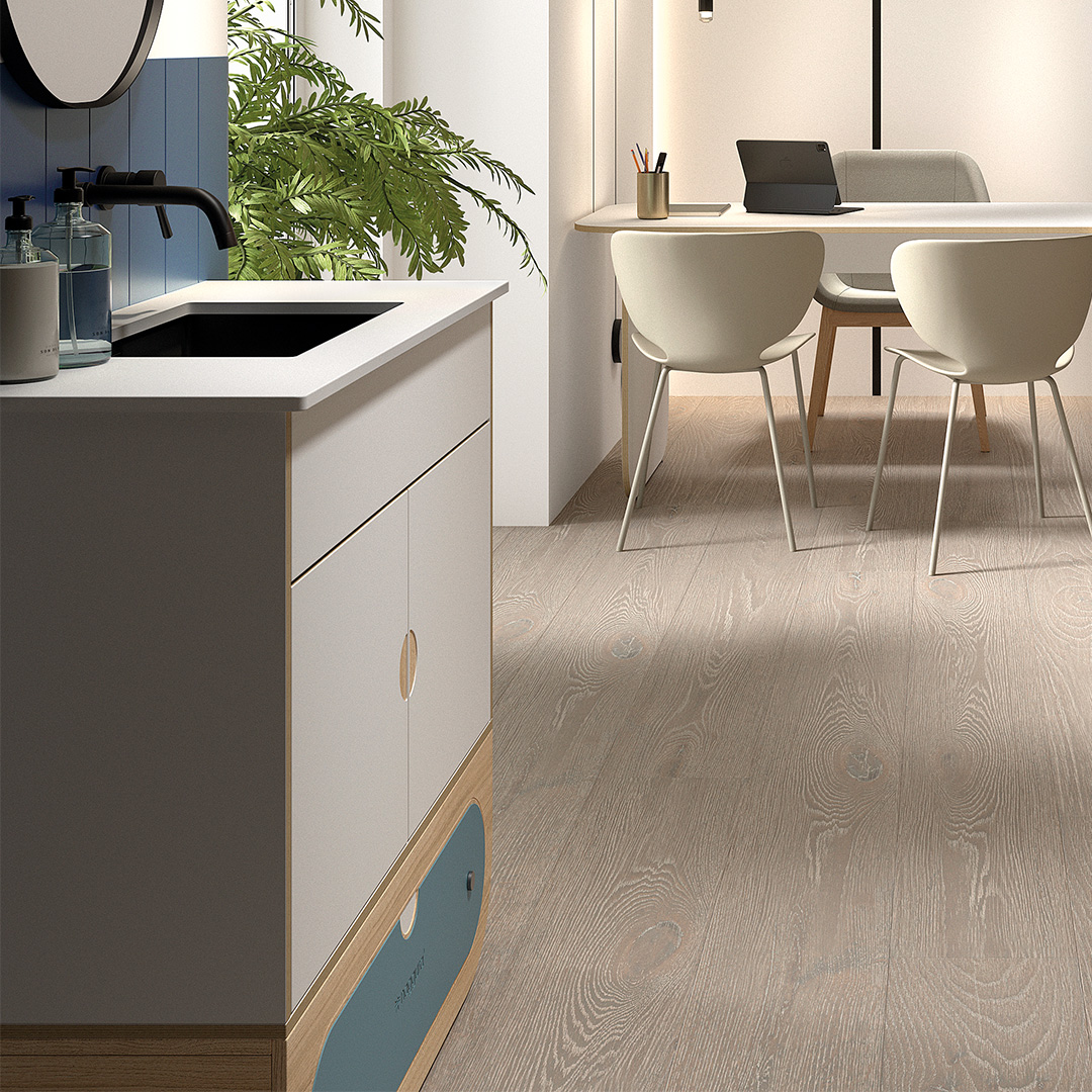 Naggura Módulo Higiene S Inox Carvalho adapta 94 x 42 x 103 cm para entregar higiene profissional sem ocupar espaço. Além disso, o tampo em quartzo técnico suporta desinfeções contínuas sem perder brilho.