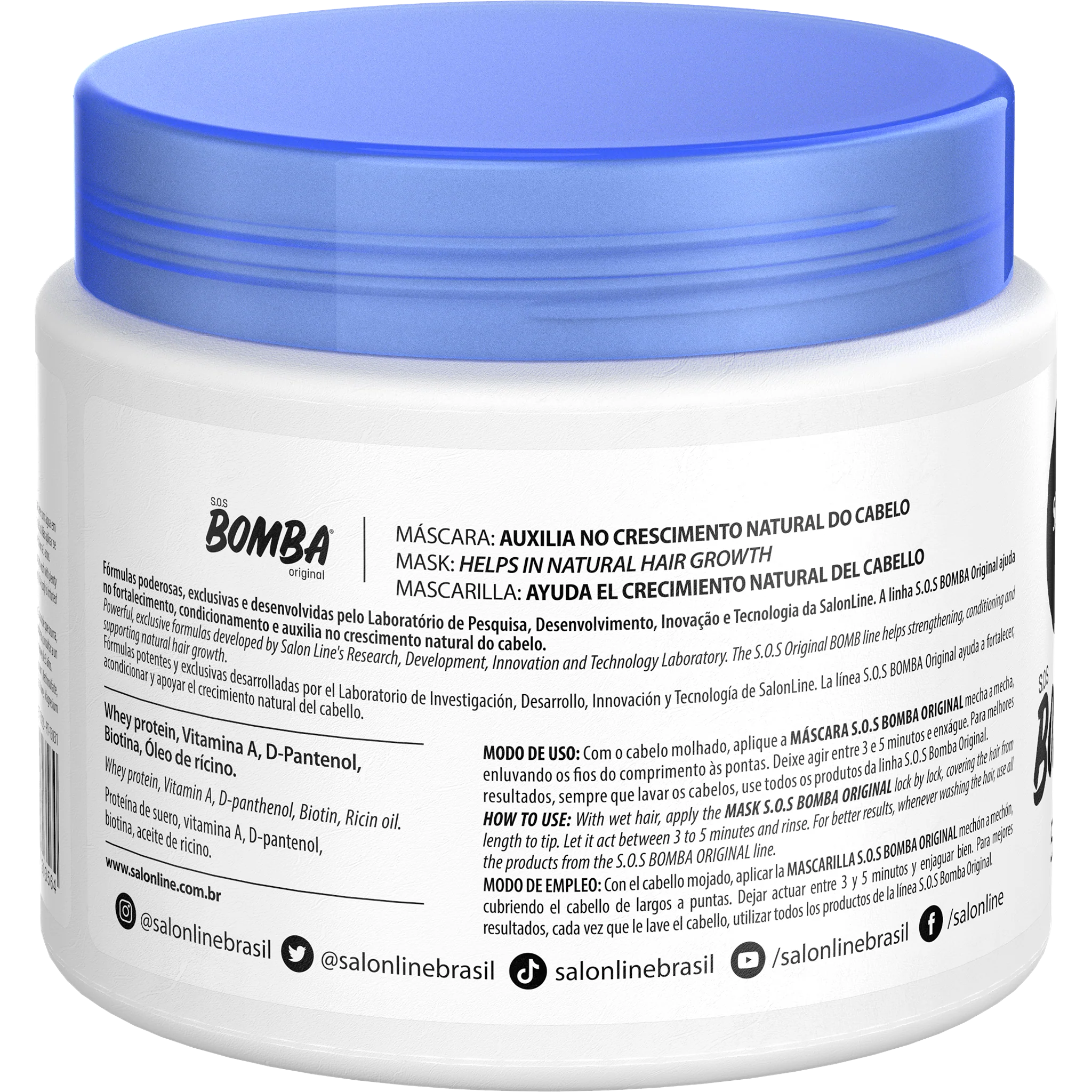 Para melhores resultados, utilize o Shampoo Salon Line Bomba, o condicionador, o creme para pentear e o tônico fortalecedor da linha S.O.S Bomba Original da Salon Line.