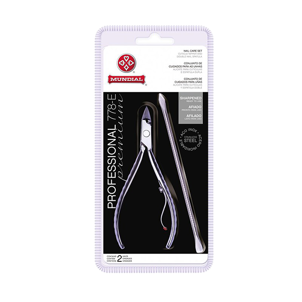Kit Alicate Mundial 778E Com Espátula De Unha Inox Profissional