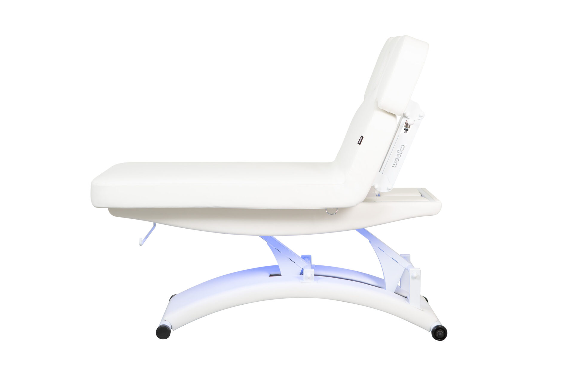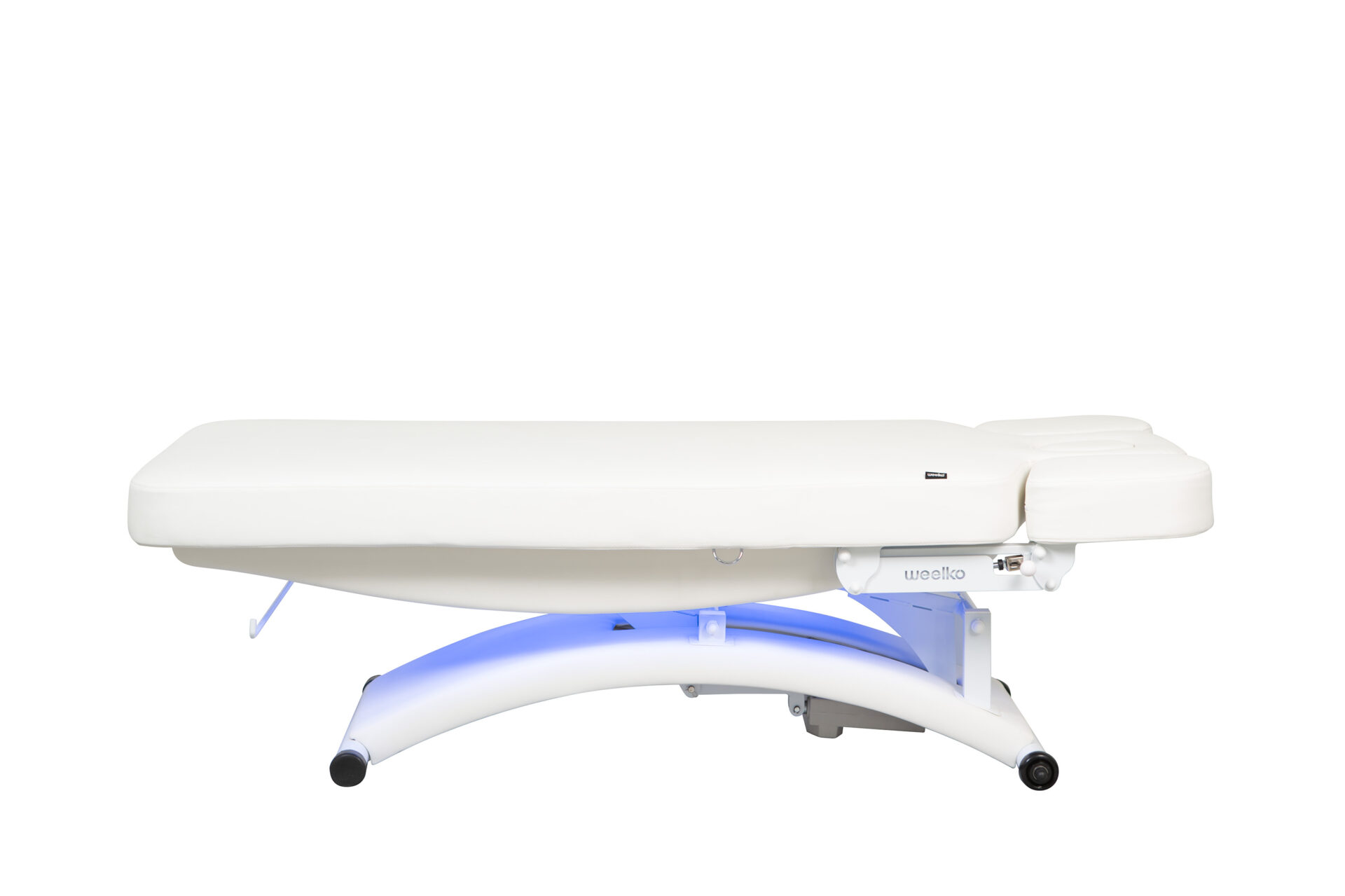Apresentamos a marquesa de spa profissional com 3 motores que permitem regular a altura, o encosto e o apoio para os pés, proporcionando um conforto e ergonomia superiores durante os tratamentos. Além disso, dispõe de um colchão de uma única peça com 3 secções, revestido em PU branco de alta qualidade, com 12 cm de acolchoamento ultra confortável e sistema de calefação integrado.