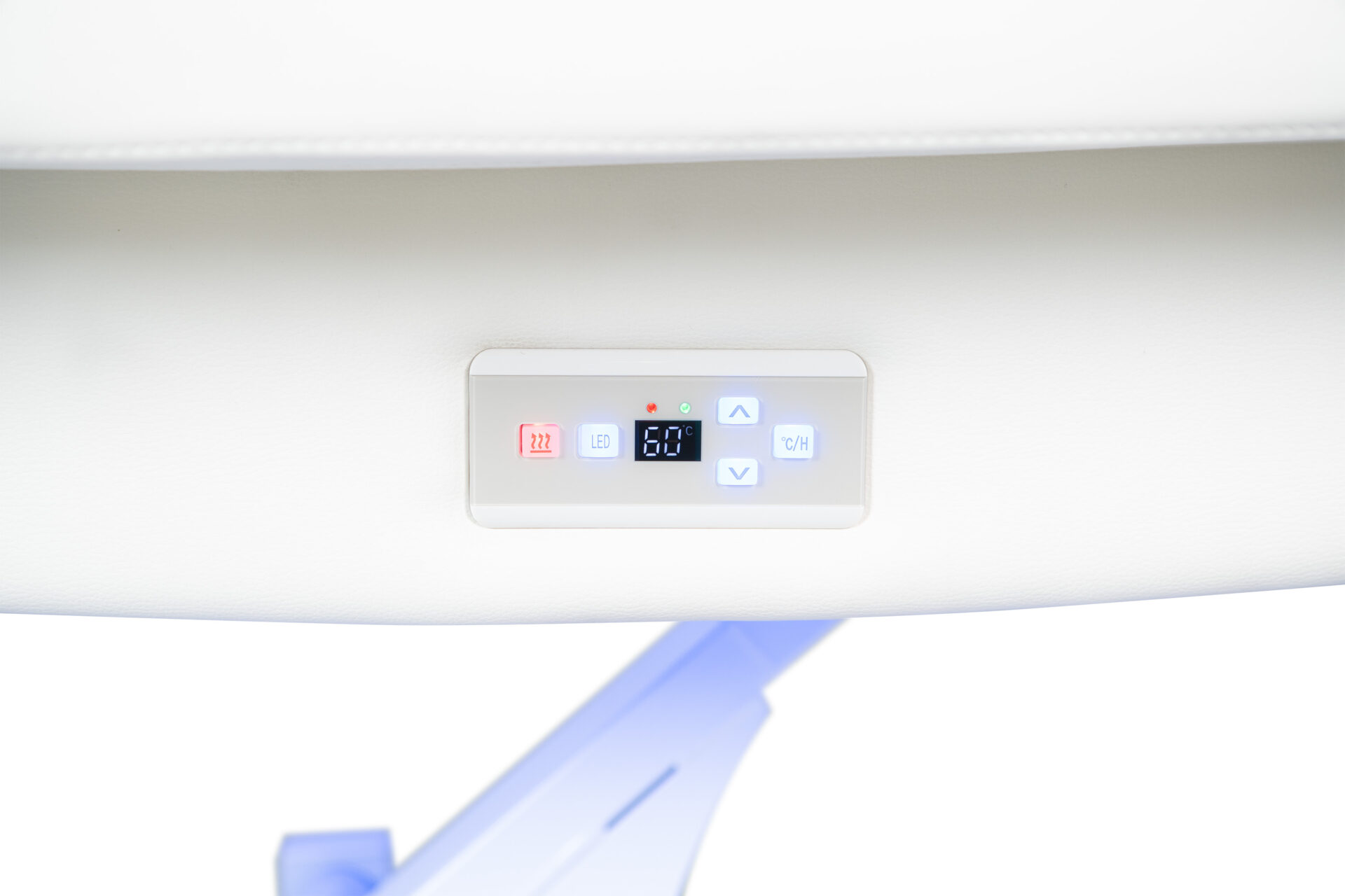 Esta marquesa destaca-se pelo controlo elétrico em três pontos essenciais: altura, encosto e reposapiés, garantindo que o profissional pode ajustar a posição do paciente de forma precisa e rápida. Por outro lado, a presença do sistema de calefação no colchão oferece um conforto térmico adicional, ideal para tratamentos que exigem relaxamento muscular.