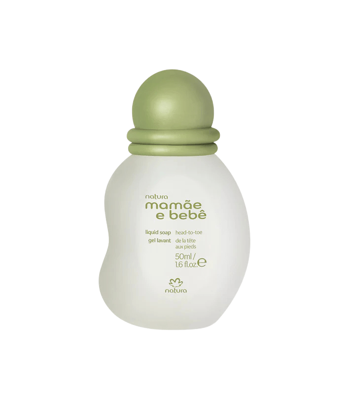 Natura Mamãe e Bebê - Sabonete líquido da cabeça aos pés 50ml faz uma limpeza suave do couro cabeludo ao corpinho do recém-nascido graças à fórmula com cerca de 98 % de ingredientes naturais e biodegradáveis. Enriquecido com glicerina vegetal e tensoativos de origem vegetal e mantém a hidratação da pele sensível.