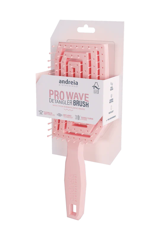 Andreia Wave Detangler é a escova desembaraçante sustentável pensada para reduzir a quebra, facilitar o penteado e oferecer conforto diário. Assim, o seu corpo ventilado em “ondas” permite melhor circulação de ar, o que ajuda a secar mais rápido e a modelar com menos esforço.