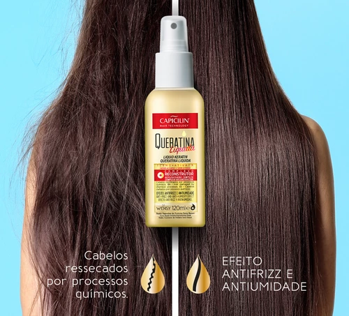 Borrife Queratina Líquida Capicilin por todo o comprimento e pontas (não enxágue).